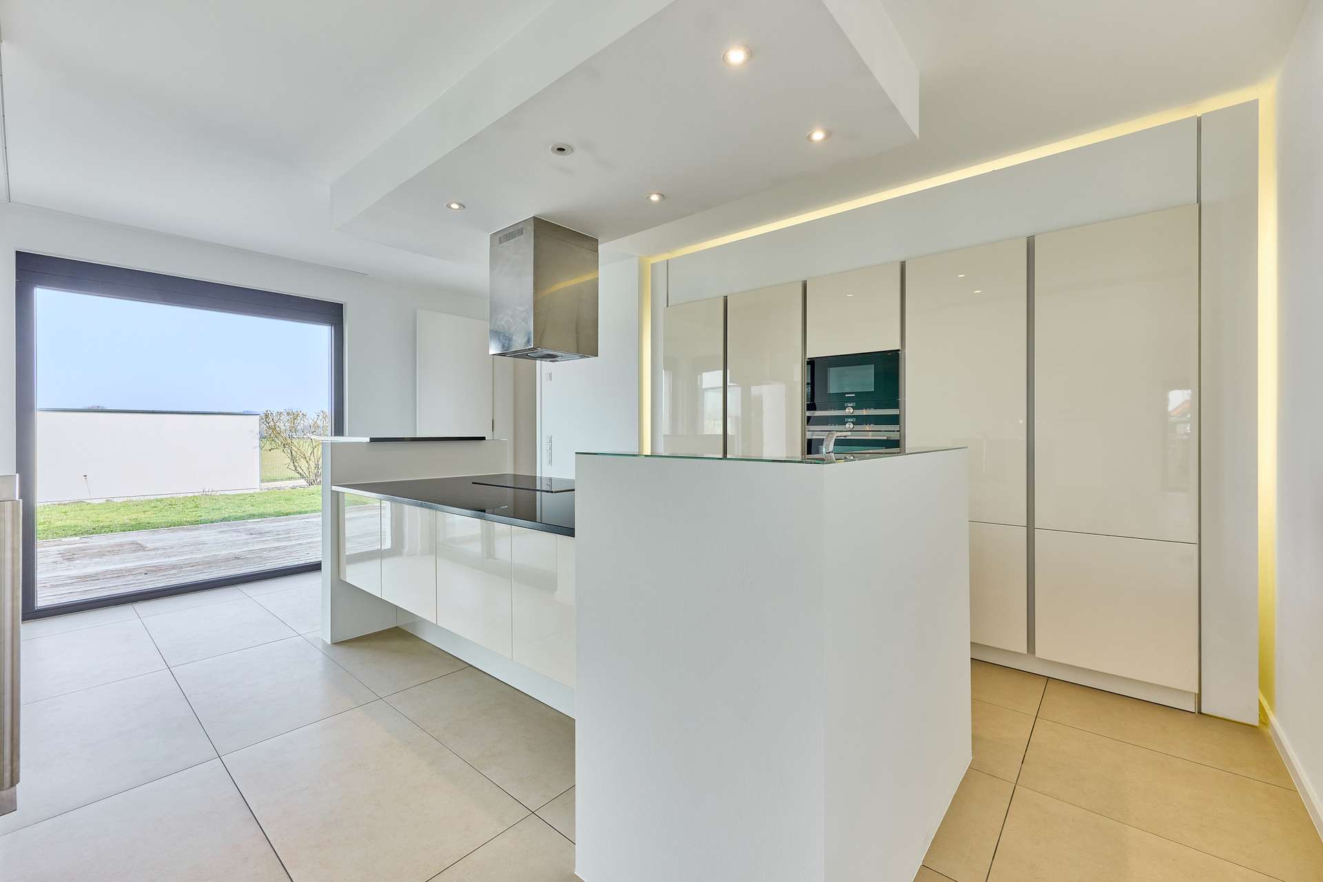 ✓ hochwertige Designküche mit schwebender Optik, freistehendem Kochfeld &