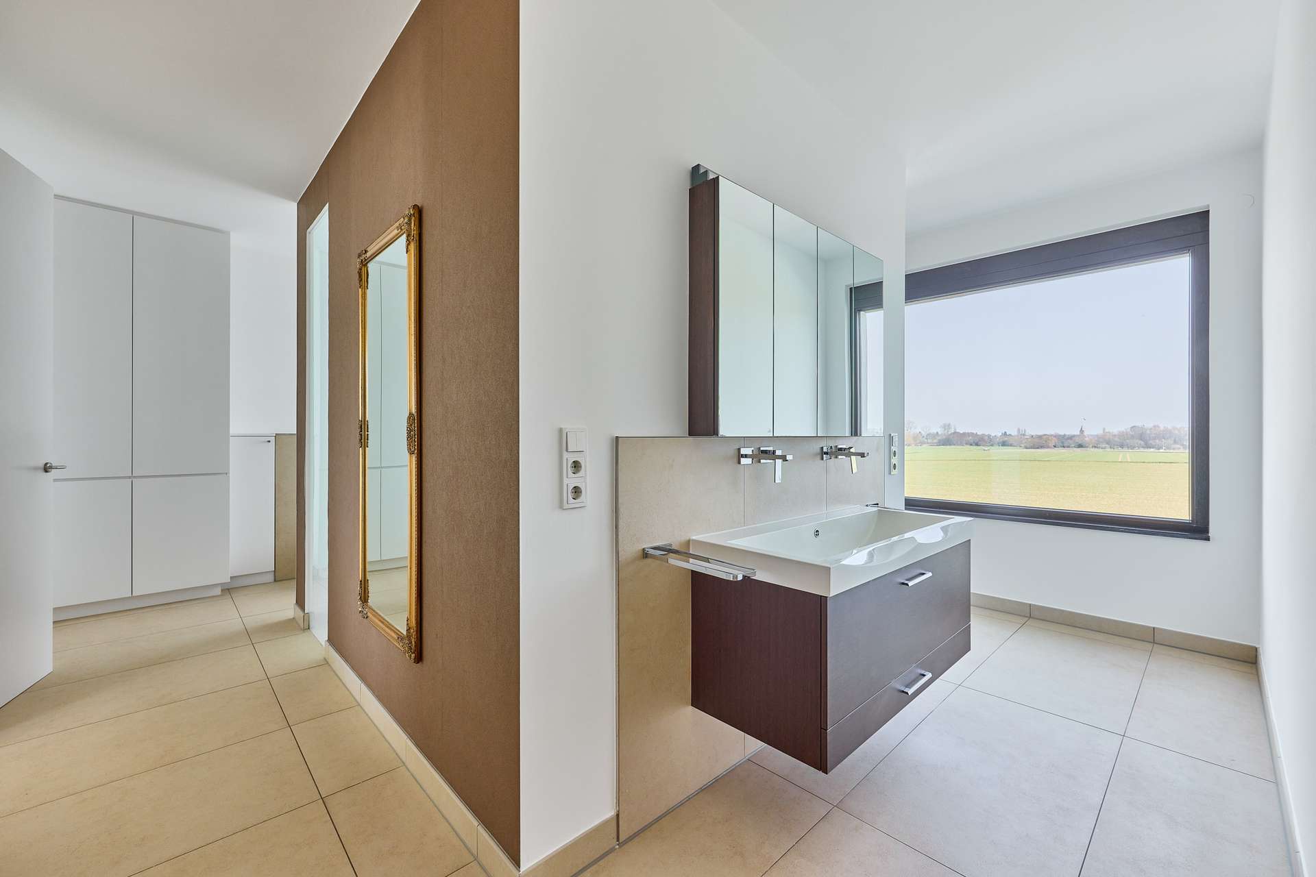 abgetrennten Bereichen & einer Badewanne mit direktem Blick über die Felder