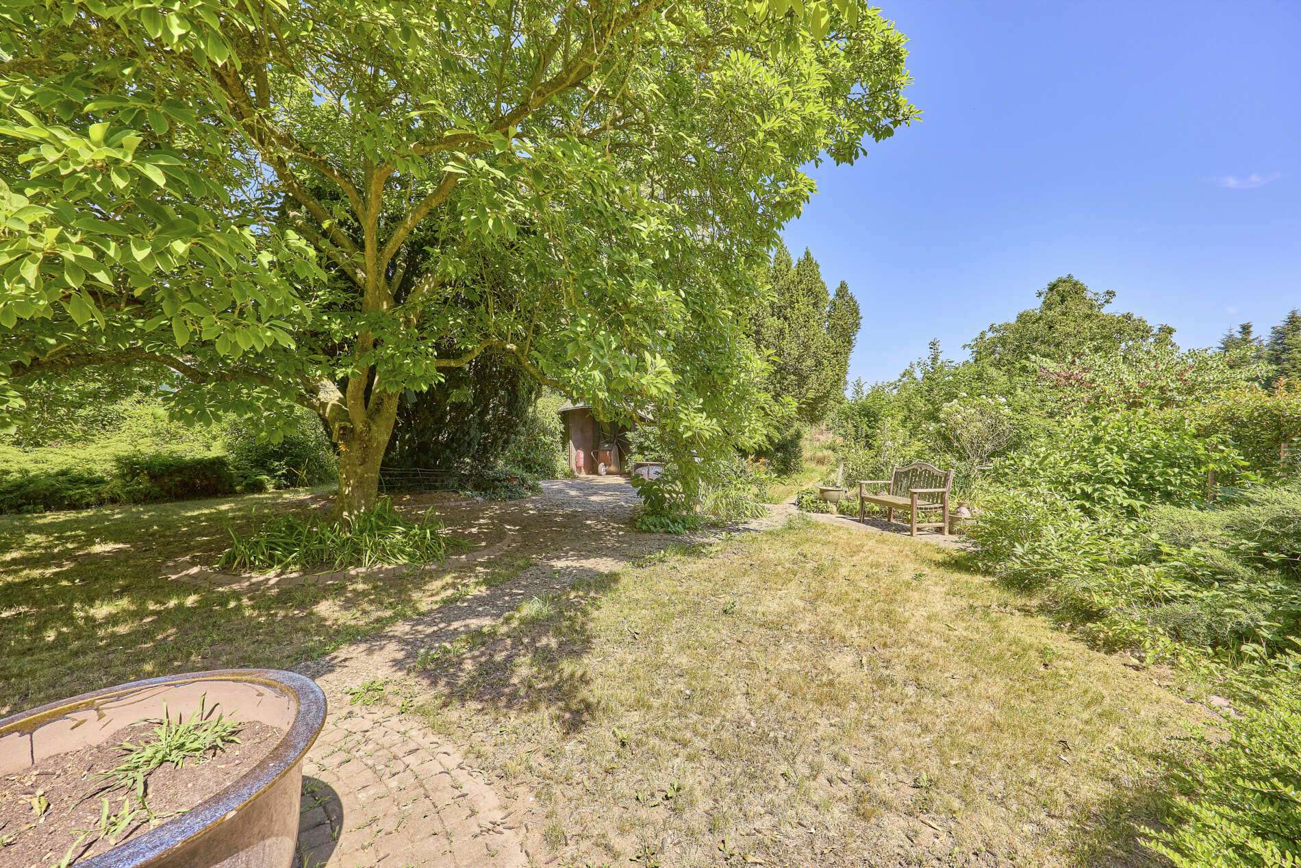 ✓ großzügiges Grundstück mit gepflegtem Garten und altem Baumbestand