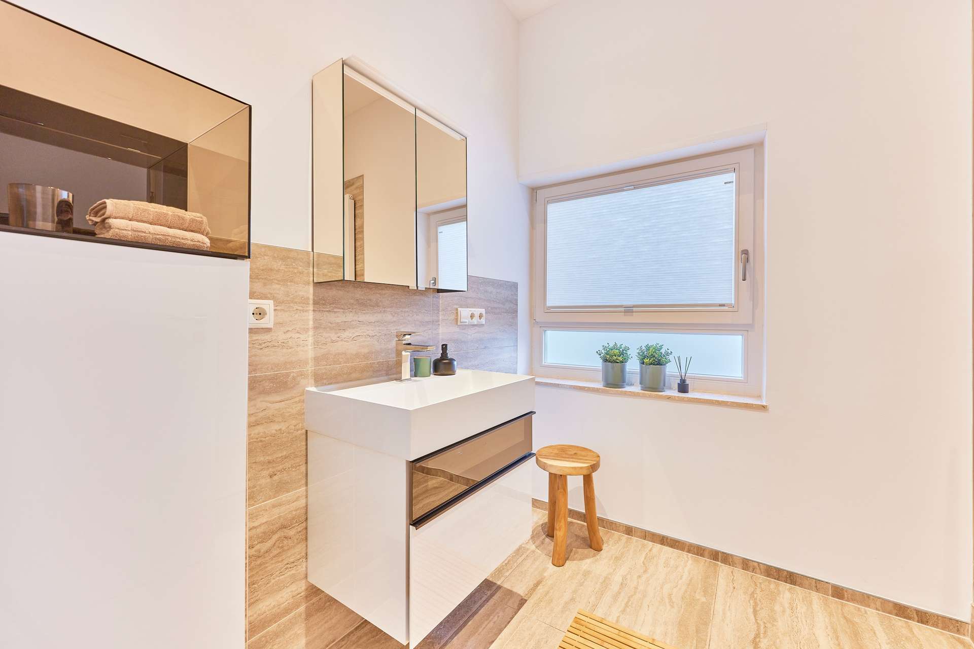 ✓ zwei modern gefließte Tageslichtbadezimmer im Souterrain & Erdgeschoss mit