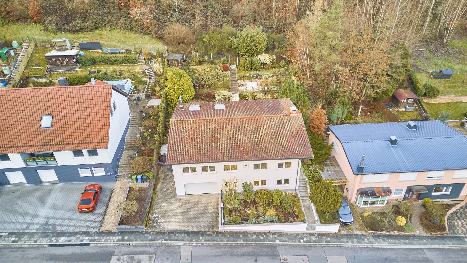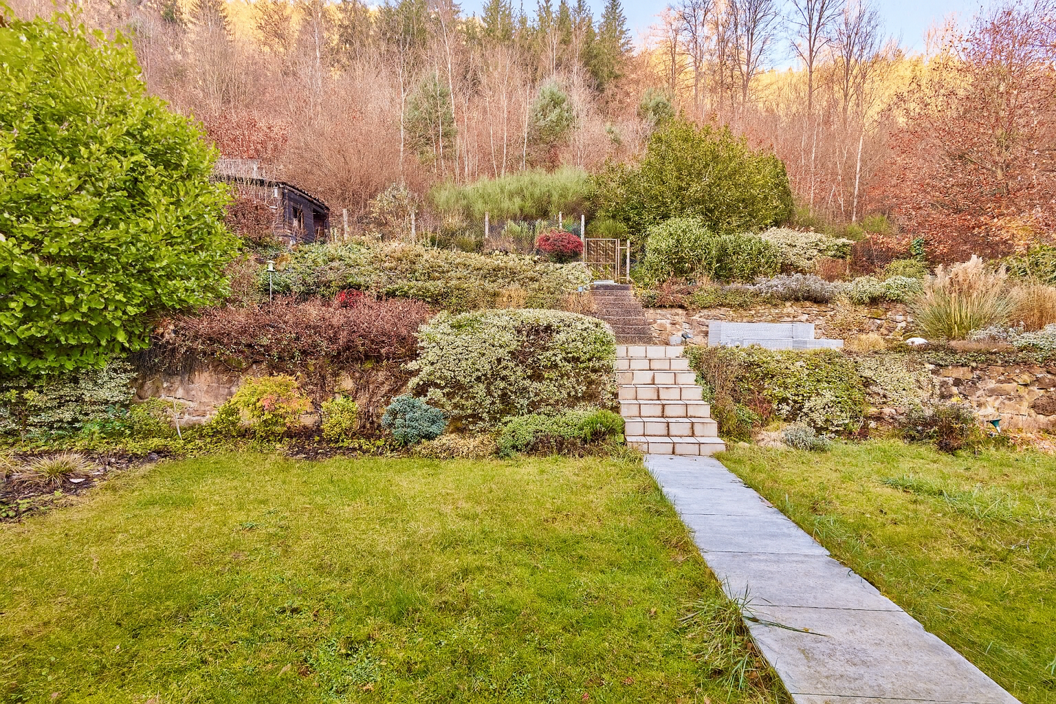 ✓ aufwendig gestalteter Hanggarten mit Natursteinmauern, abgestuftem