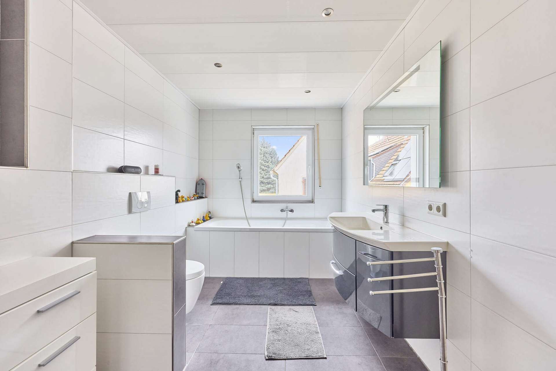 ✓ zwei Tageslichtbäder mit Wanne und Dusche