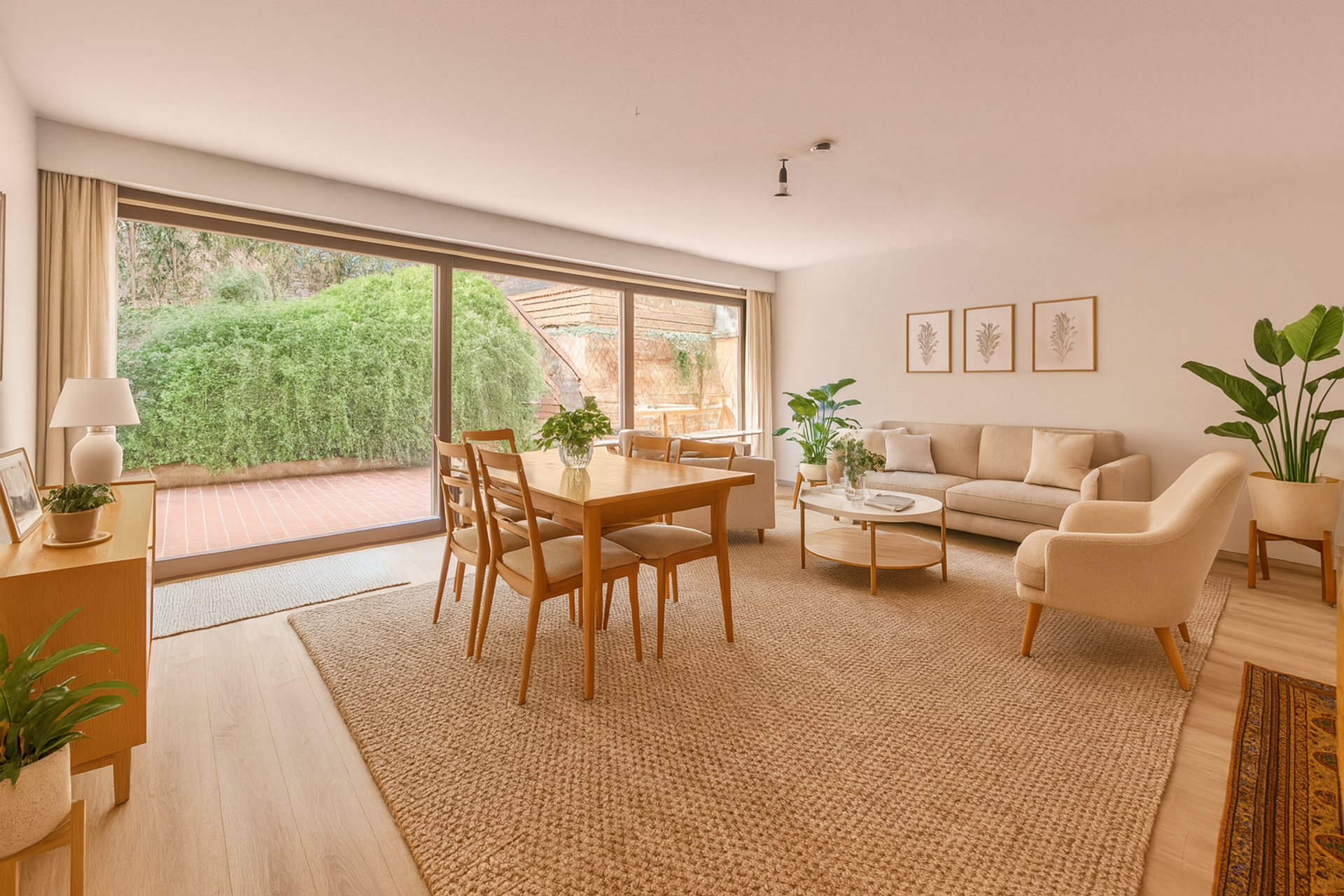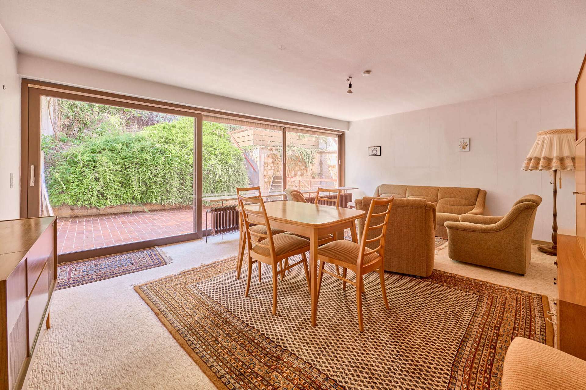 ✓ helles Wohnzimmer mit direktem Zugang zu Terrasse und Garten