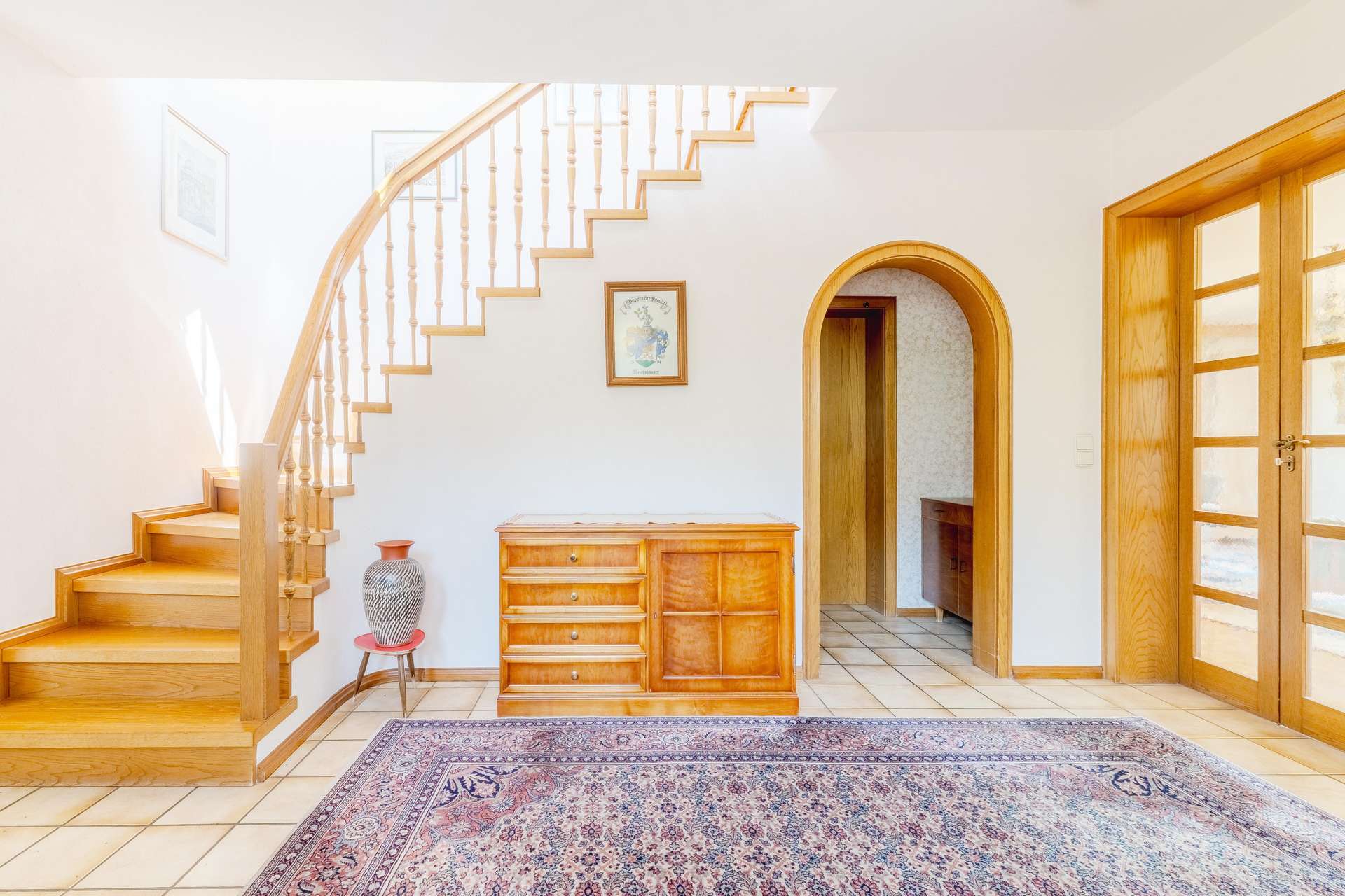 ✓ großer Eingangsbereich mit geschwungener Holztreppe
