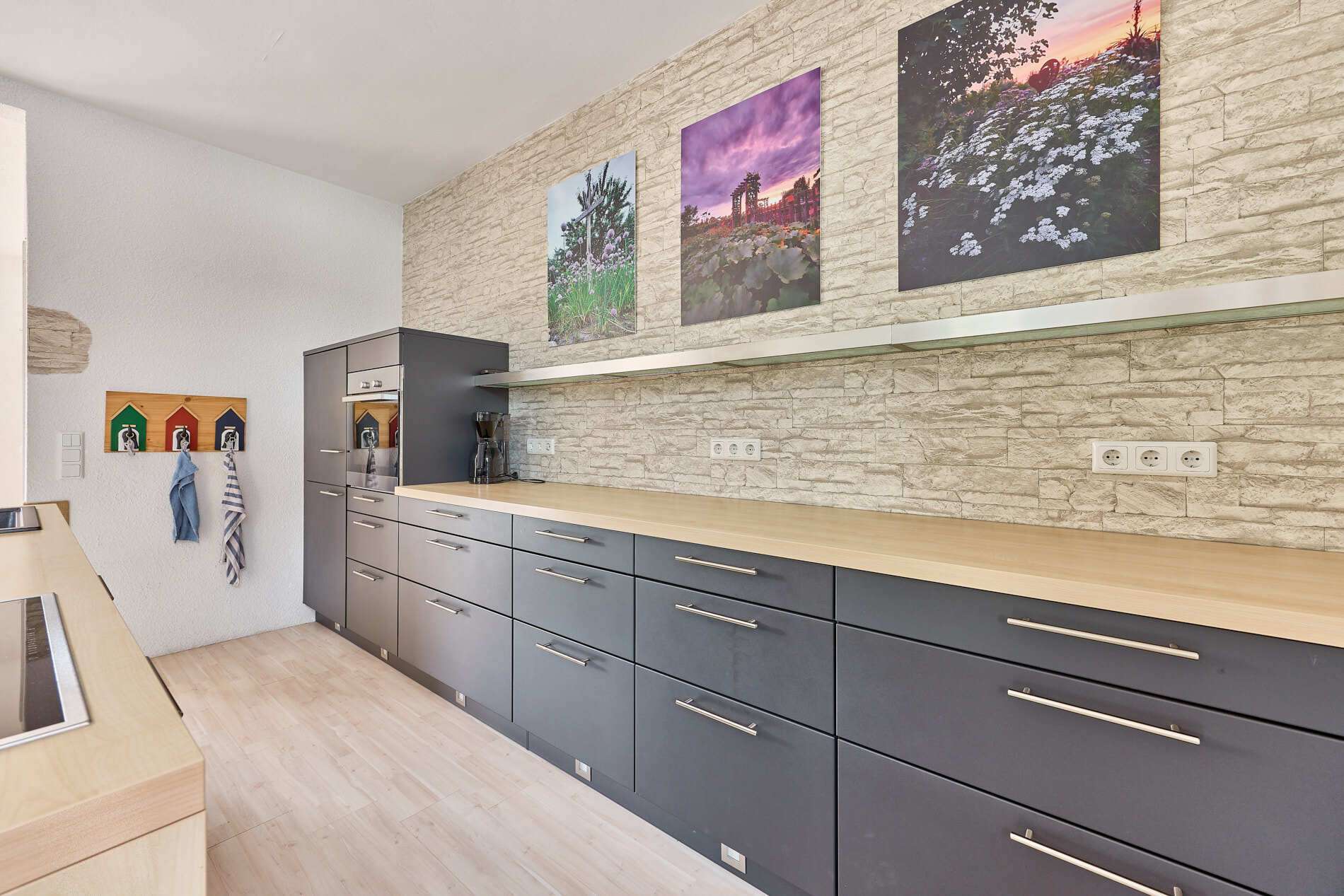 ✓ helles Wohnzimmer mit hochwertiger Wohnküche der Firma Schüller