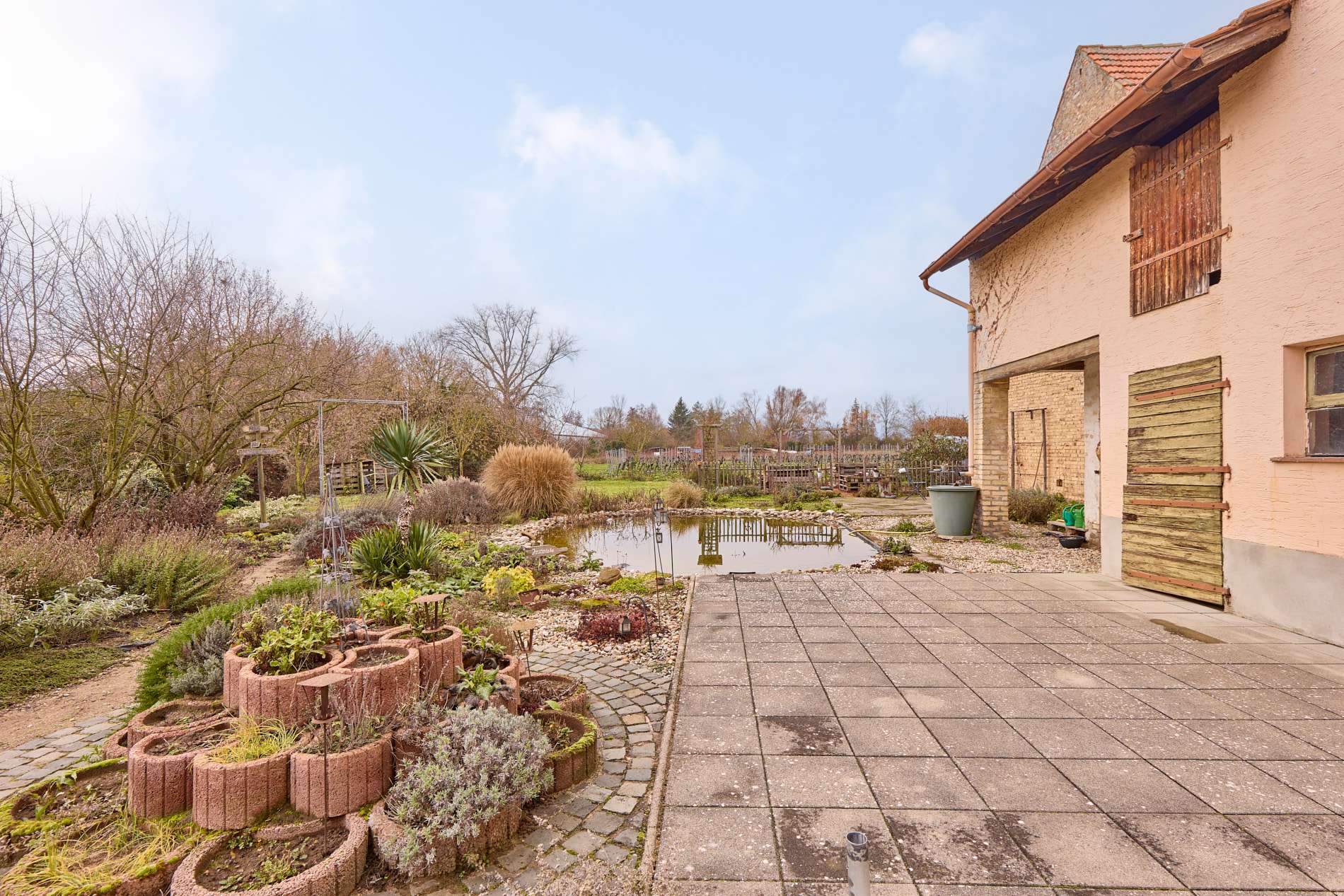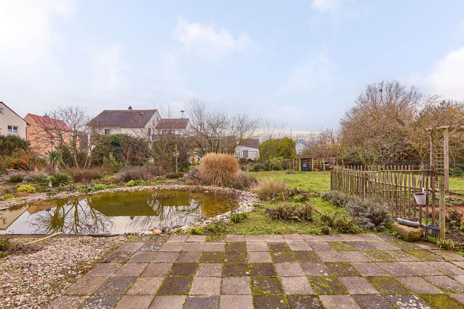 ✓ wunderschöner Garten mit großzügiger Terrasse, Teich und Blick auf die