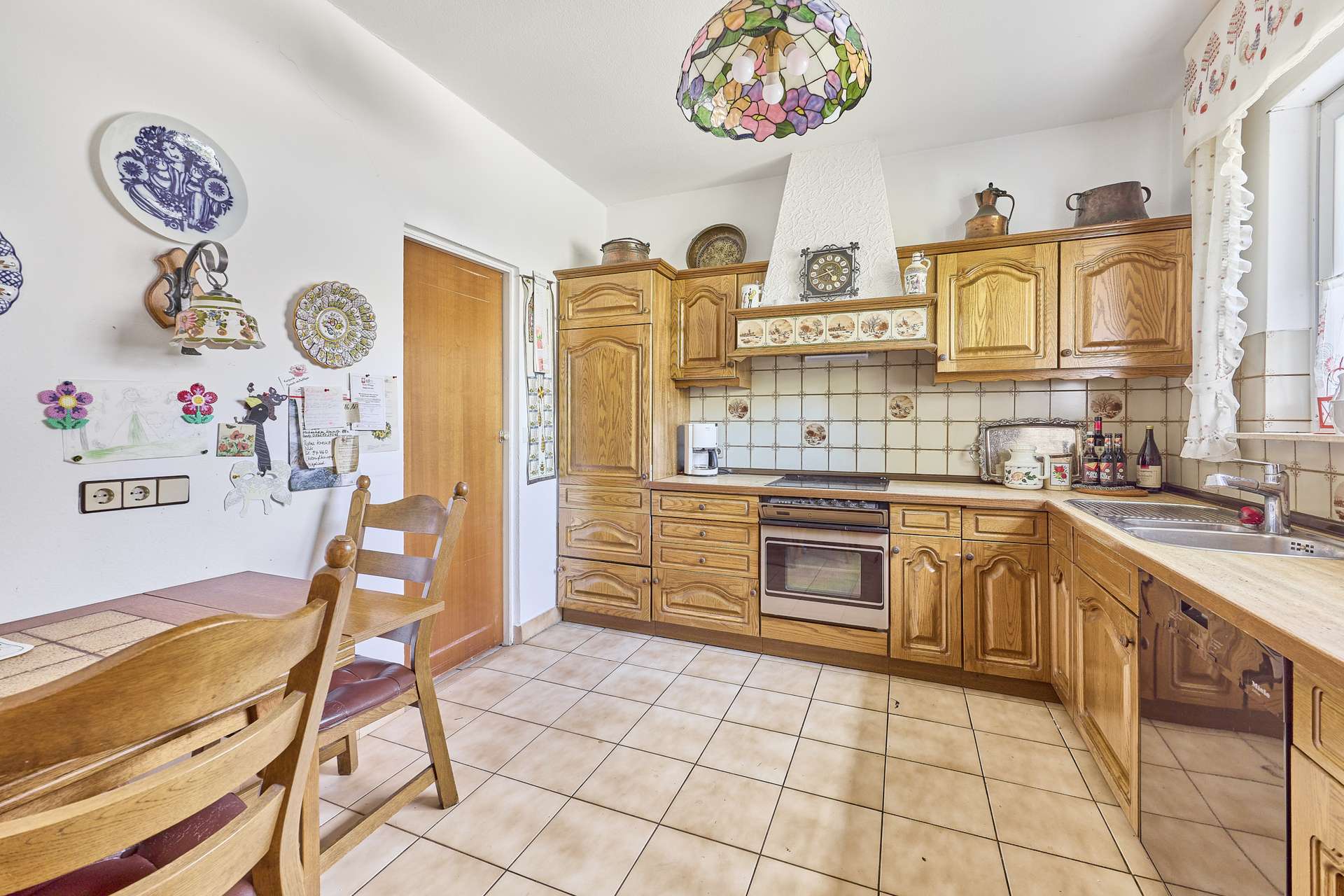 ✓ helle Küche mit Essplatz, Einbauküche, pflegeleichtem Fliesenboden und