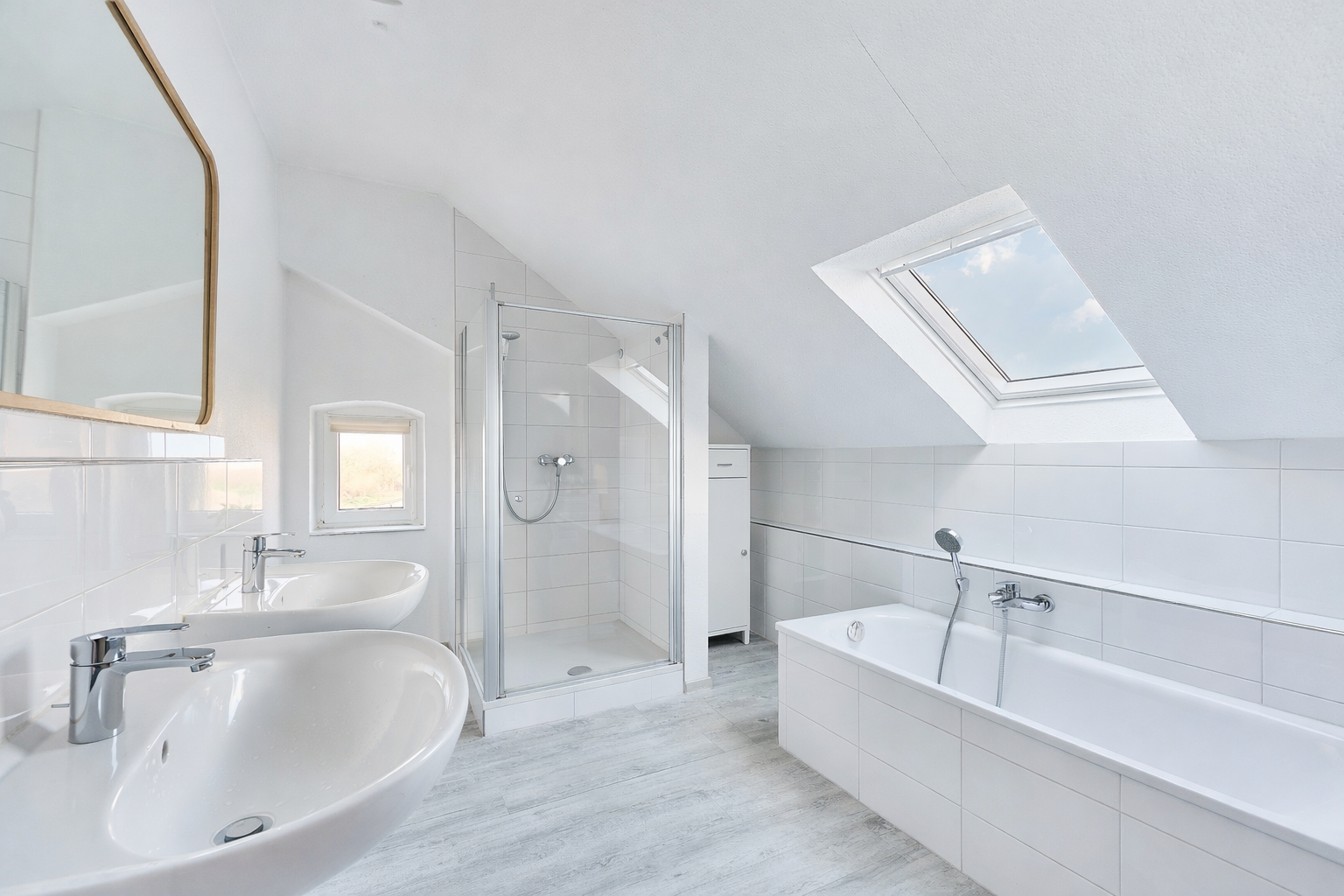 ✓ modernes Tageslichtbad mit Dusche & Badewanne im ausgebauten