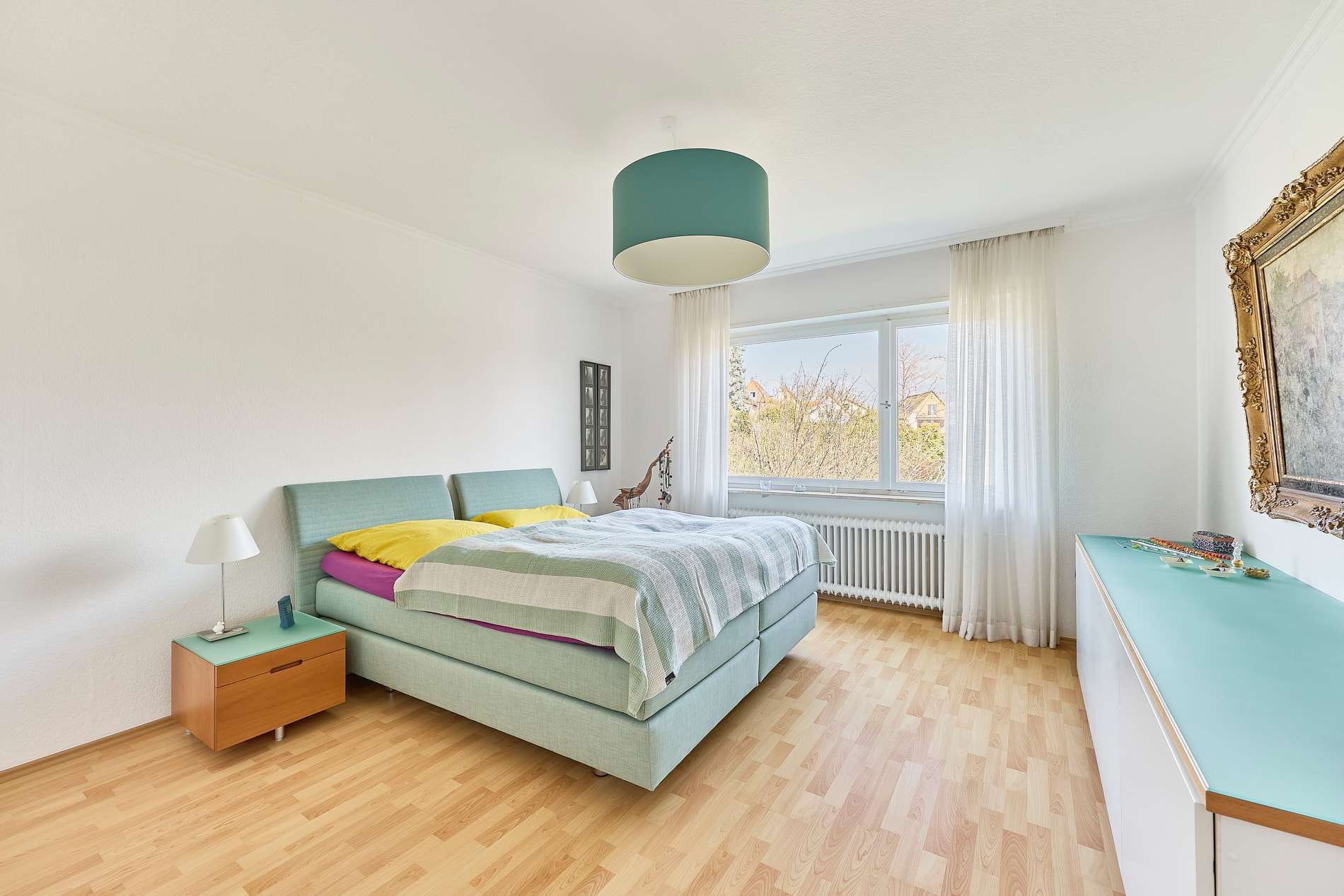 edlem Stäbchenparkett sowie elektrischen Rollläden