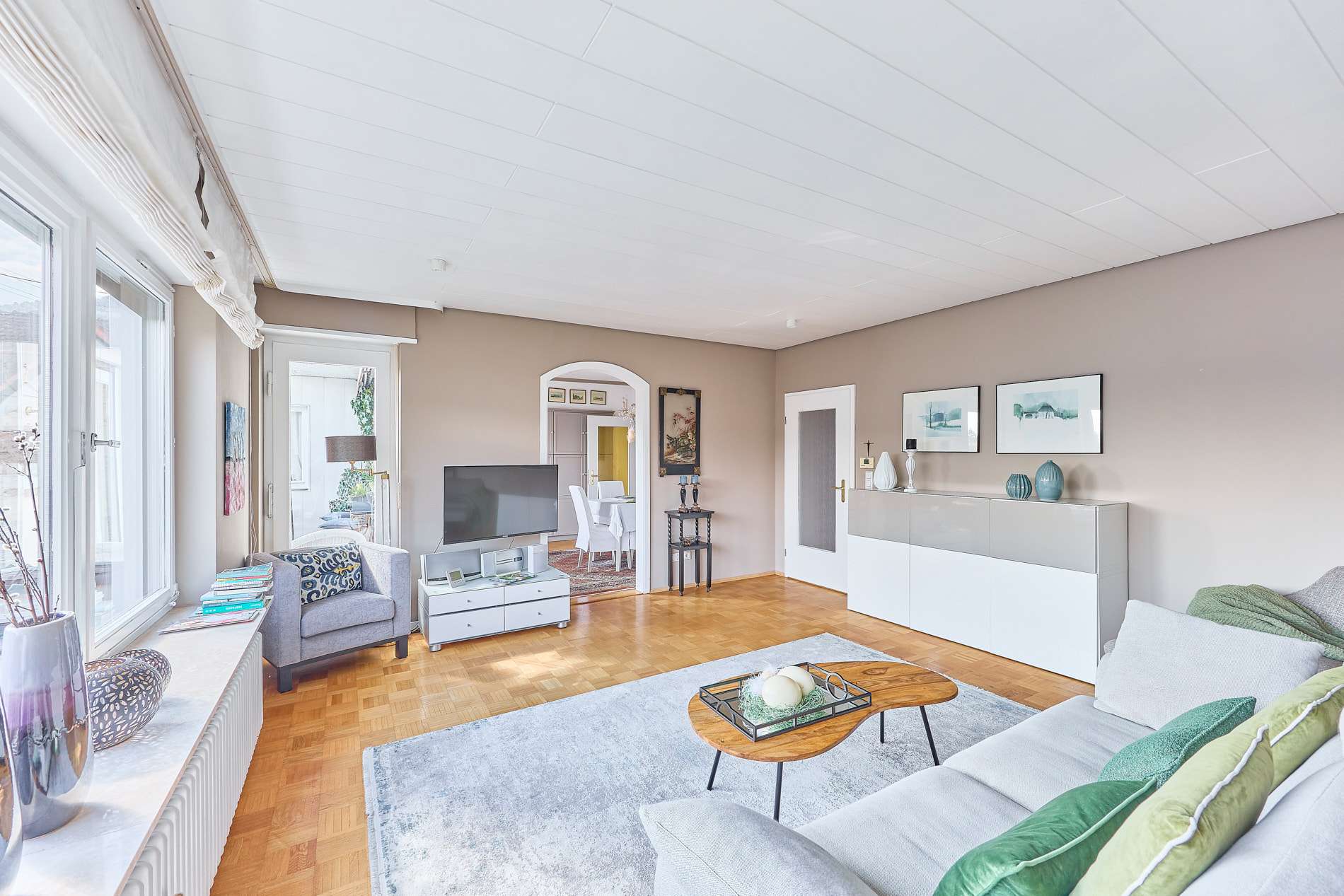 ✓ lichtdurchflutetes Wohnzimmer mit angrenzendem Esszimmer, beide mit