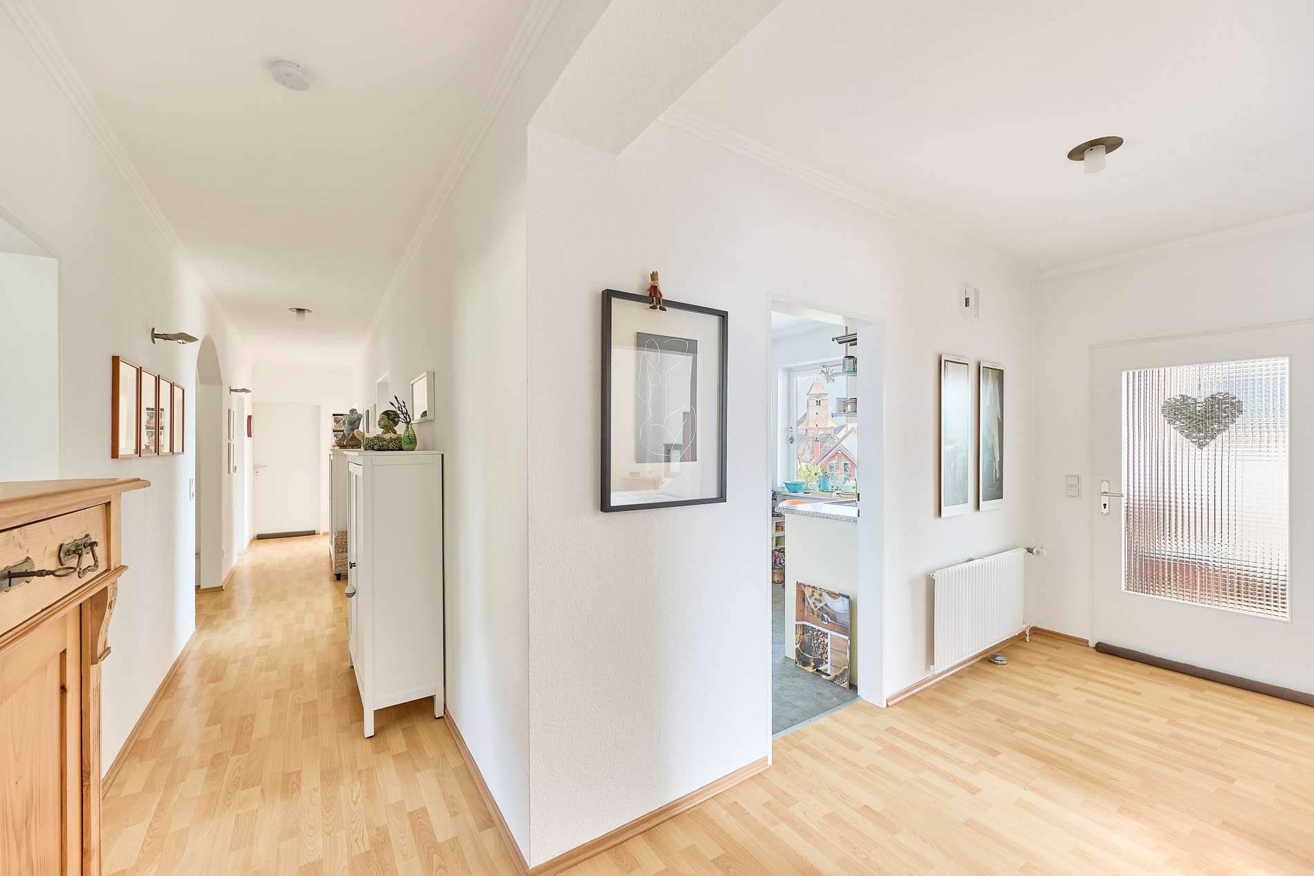 ✓ großer Eingangsbereich im hellen Design mit viel Platz für Garderoben
